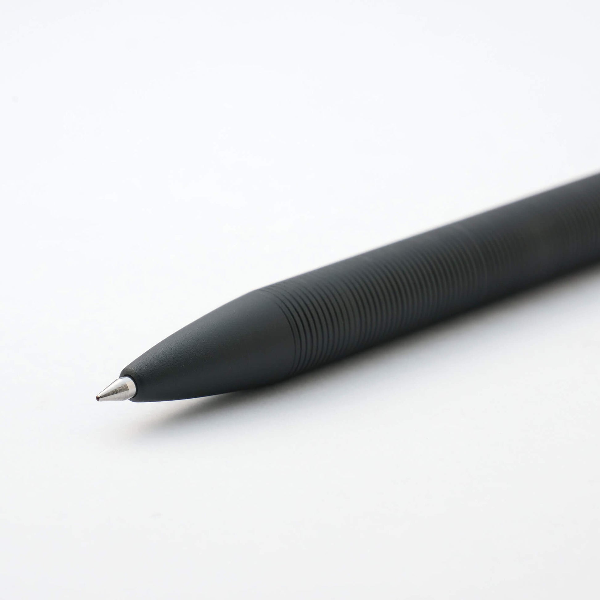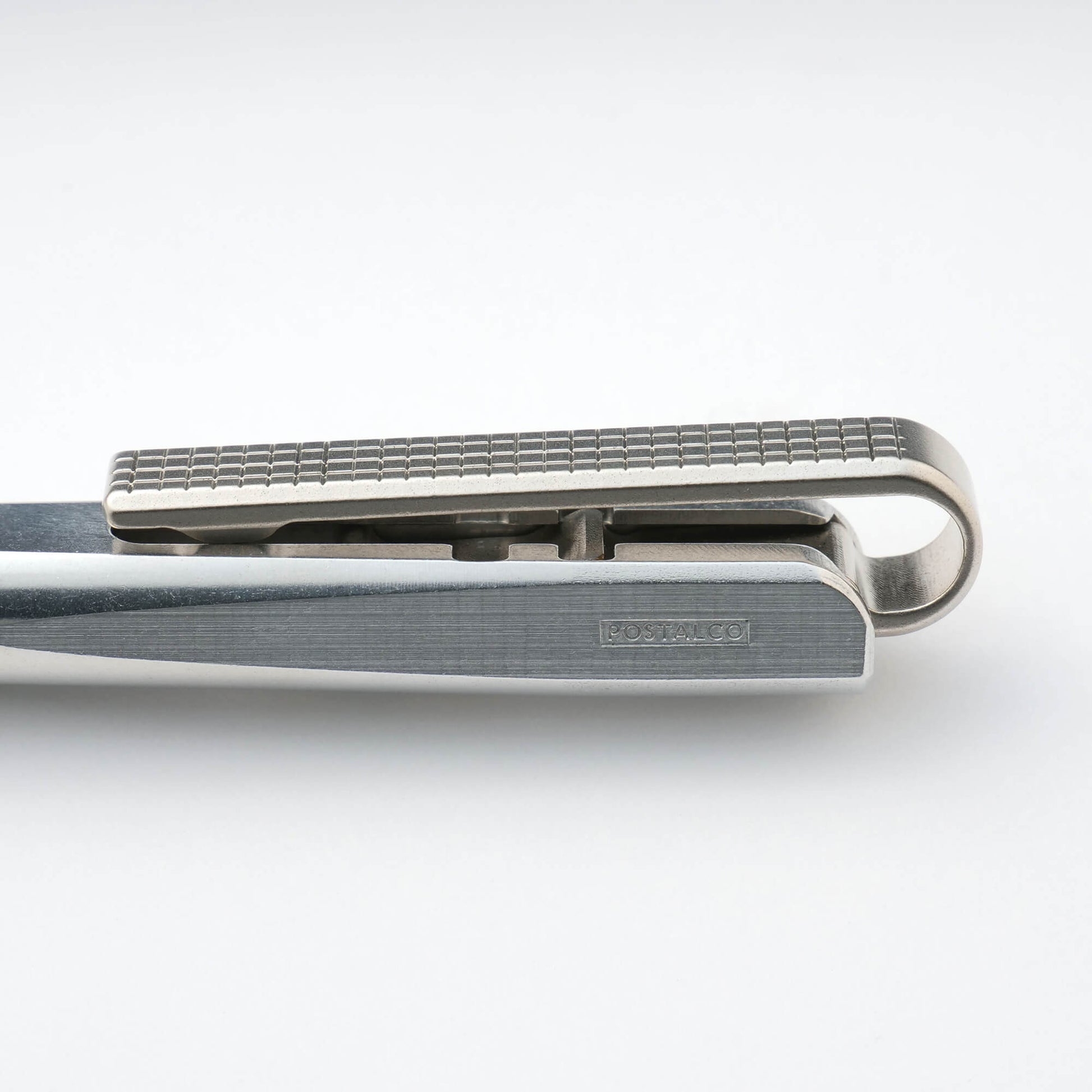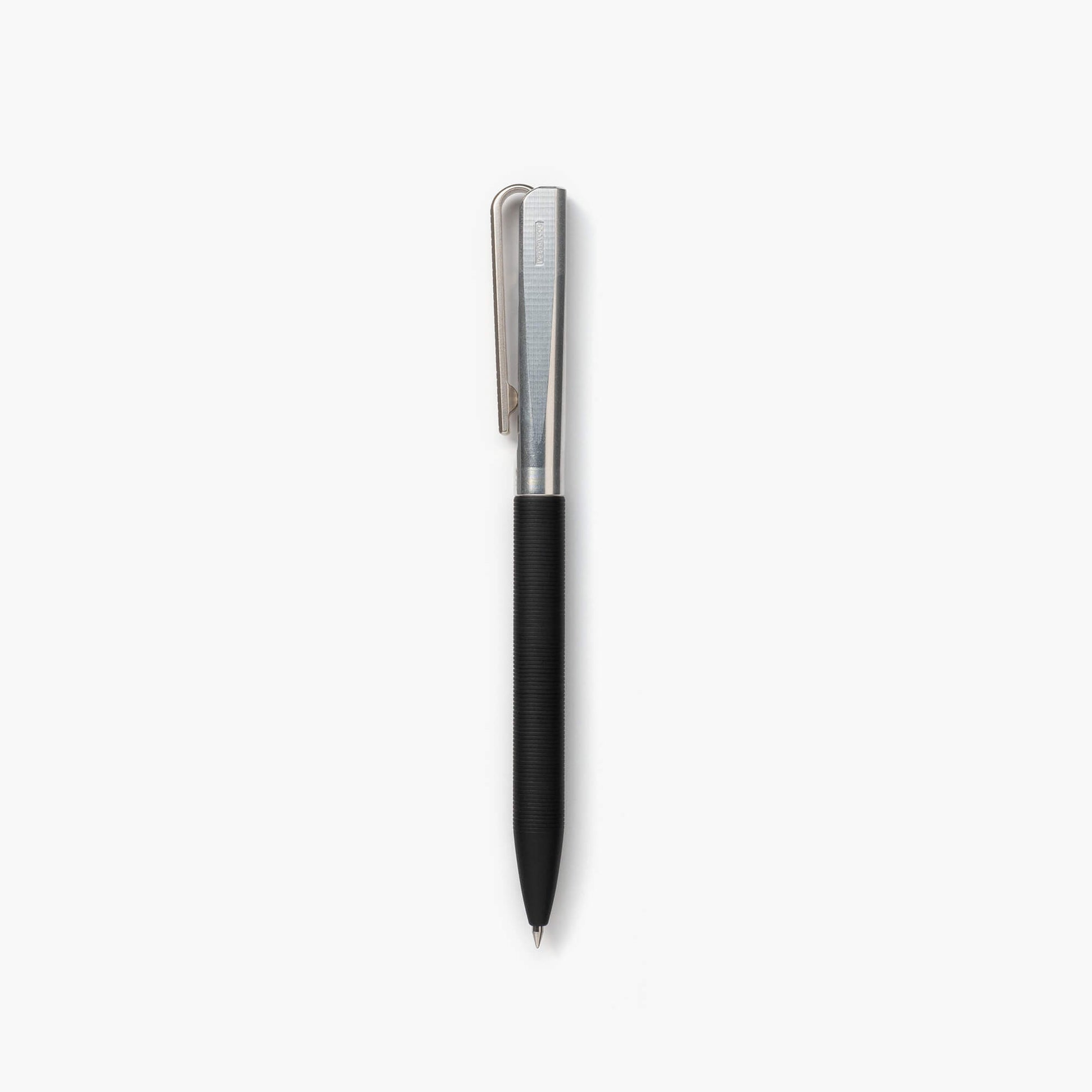 An individually handcrafted ballpoint pen carved from solid metal. Fine lines are inscribed in the pen body to provide a grip in place of plastic or rubber. One of its distinguishing features is the unique U-shaped clip. When clipped onto a pocket, the clip becomes the only visible part of the pen, effortlessly complementing any outfit. Fine Japanese craftsmanship is evident in every expertly executed detail.