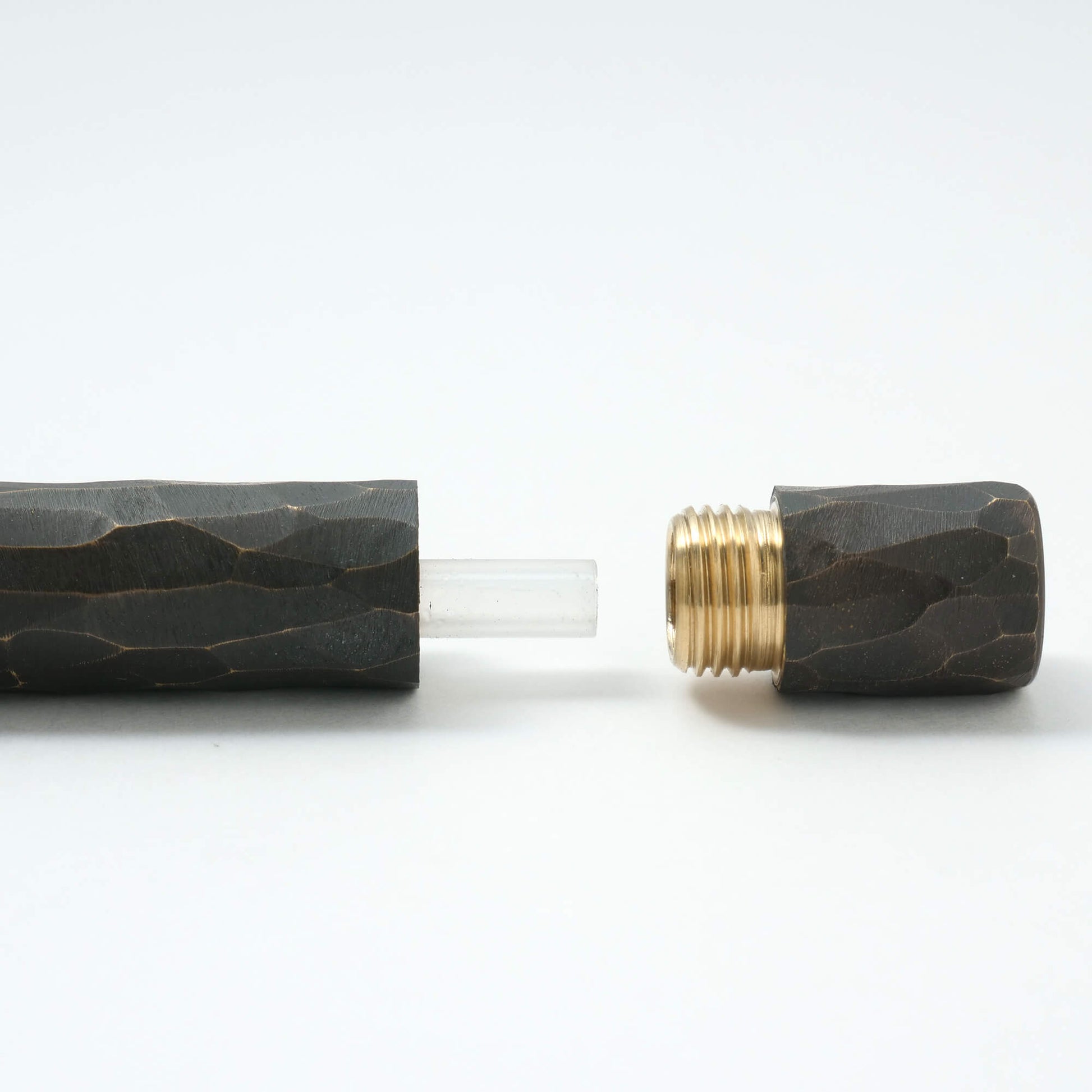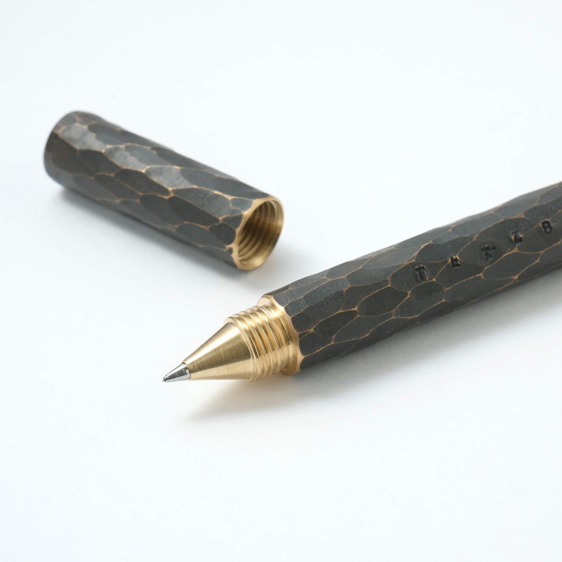 A capped ballpoint pen with a threaded end cap for accessing the refill. The end cap has been seamlessly integrated in the pen body with remarkable precision. Tetzbo pens are masterfully crafted by metalsmith Yoshikazu Takai who carries out every step of the production process by hand.