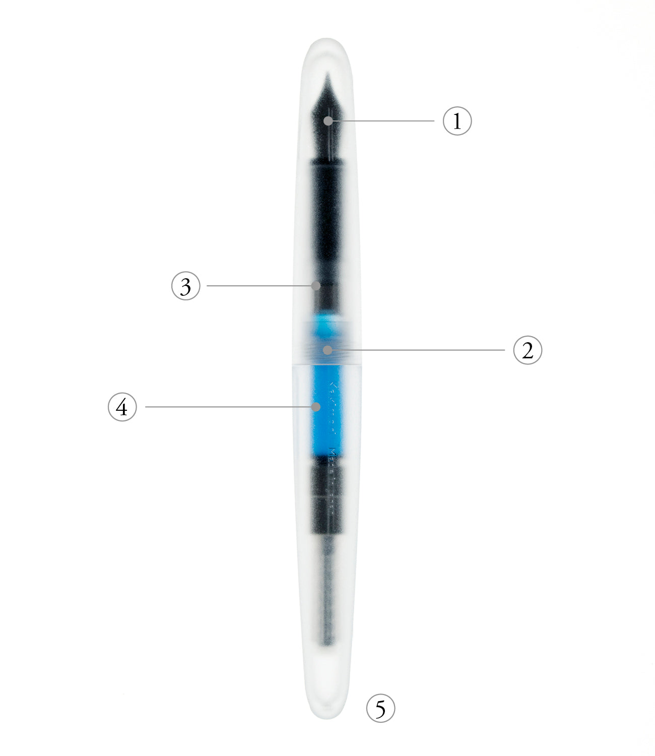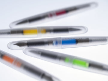 インクが半透明の軸から透けて見えることで完成するデザインです。