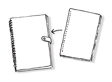 使い終えたら、中身を新しい紙に一新して、ノートを使い続けることができます。カキモリまでお持ちいただくか送ってください。一部のページを残したり、前回と異なる種類の紙もお選びいただけるので、どんどん使って交換して、最も使い勝手の良い一冊に育ててくださいね。