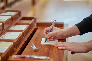 1冊1冊スタッフが丁寧に箔押しをする名入れノート。英字アルファベットの組み合わせで、お好きな文字をお選びください。