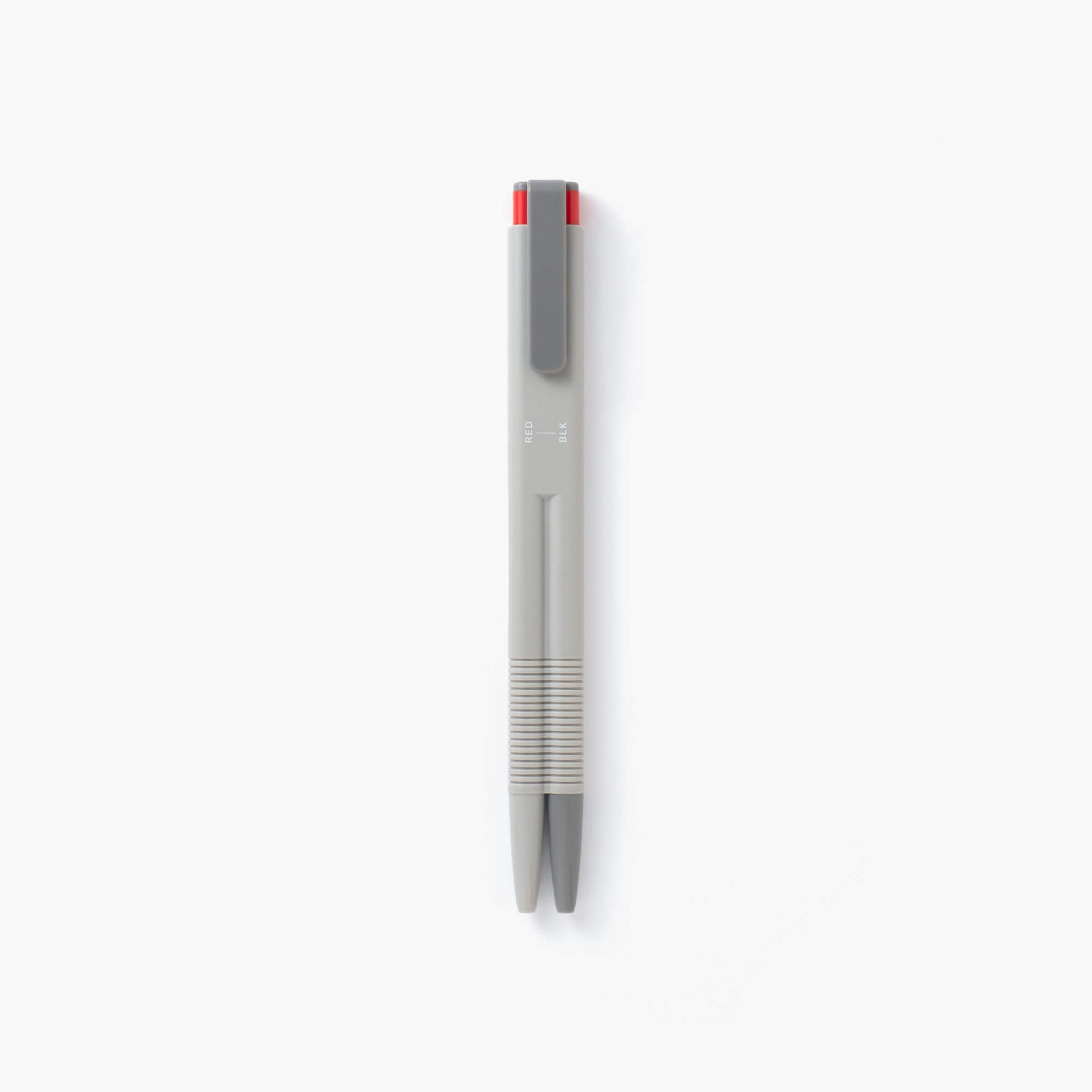 同時ノックにより芯を出し入れする、ユニークな2色ボールペン。書く時は大抵斜めに持つため、意外にも1色ずつで使いやすく、色を持ち変えるのはくるっとひっくり返すだけ。一見可笑しな形に見えて、黒と赤を交互に頻繁に使う方には重宝する筆記具です。