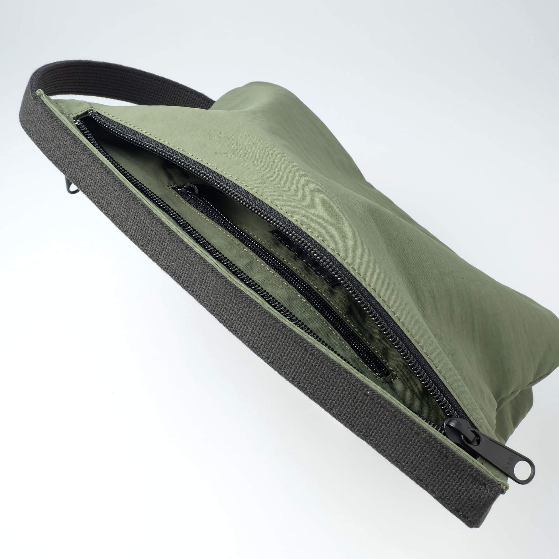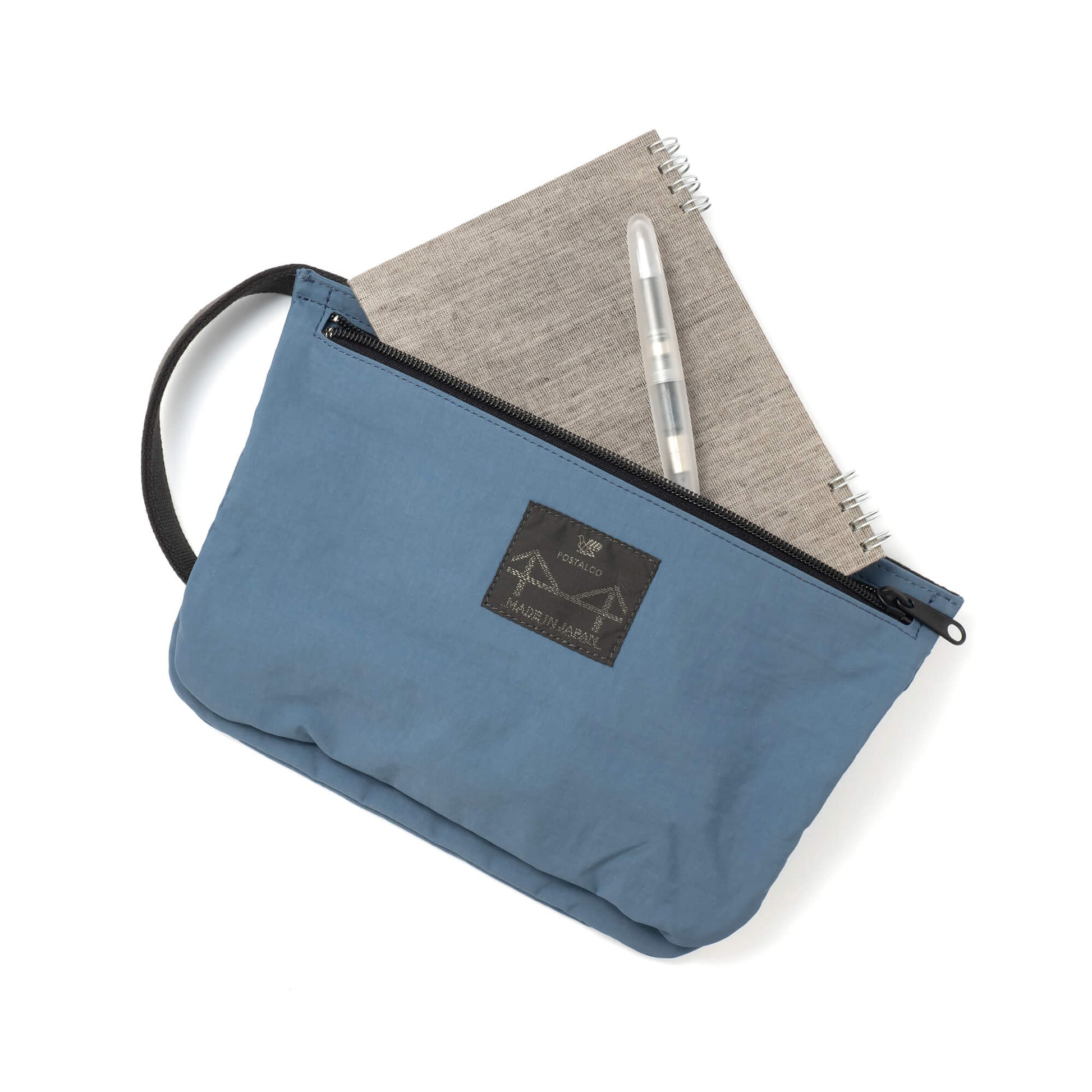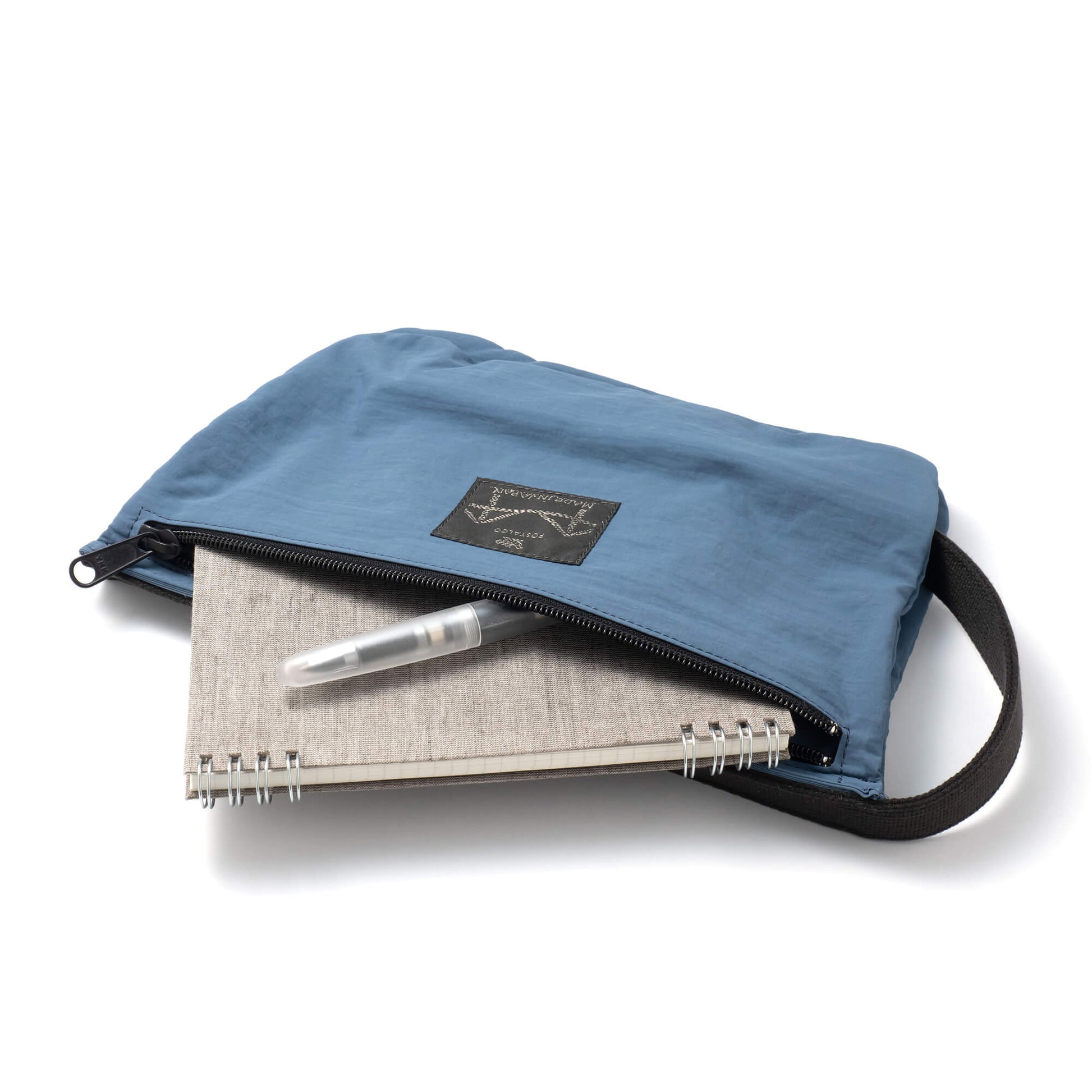 日本製のリサイクルナイロン100%の生地で作られたポーチ。
