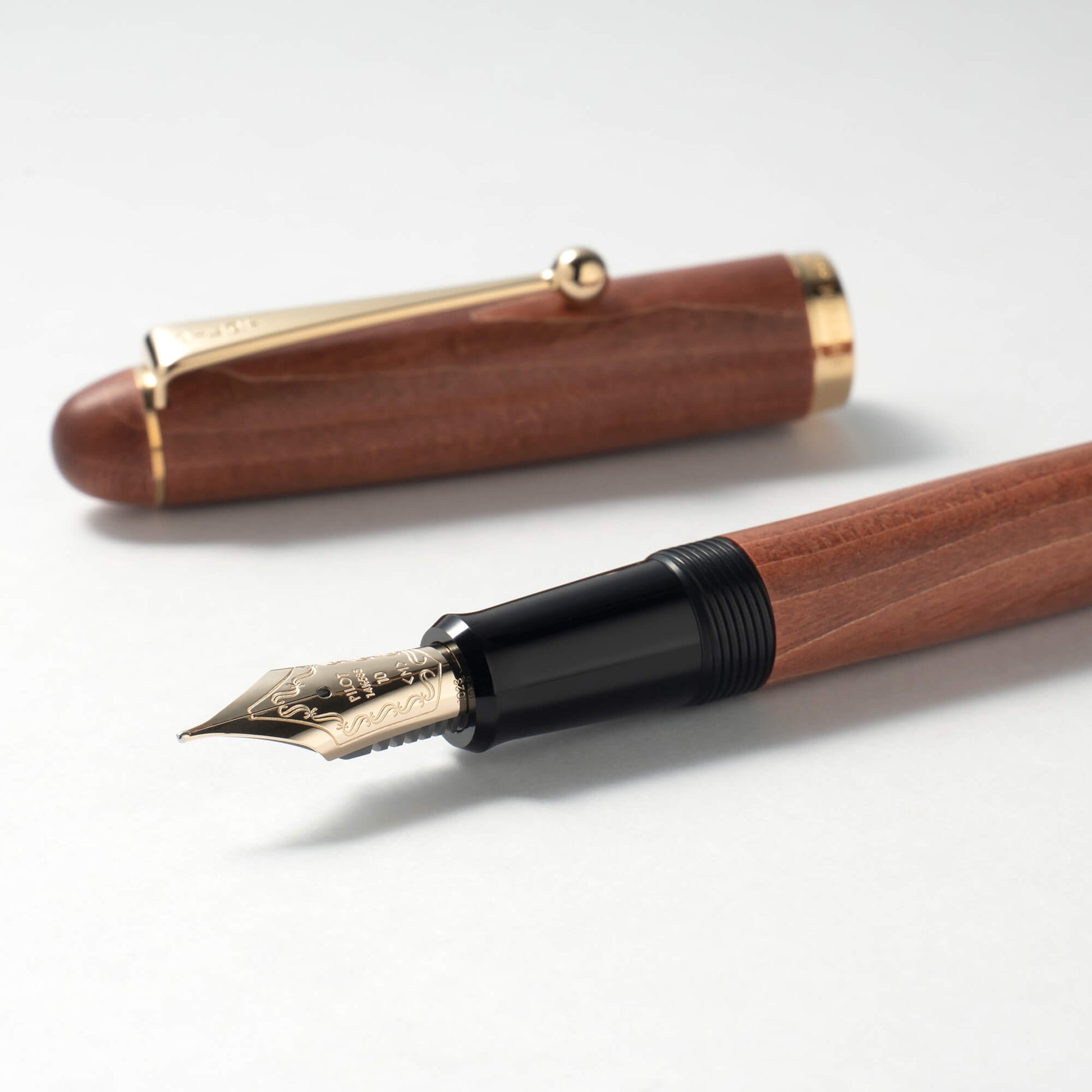 イタヤカエデの木目が美しい万年筆。木の手触りと使い込むほどに深みがましていく経年変化をお楽しみいただけます。